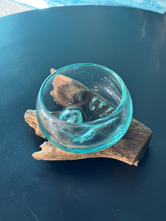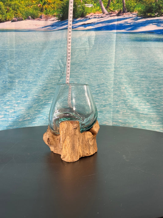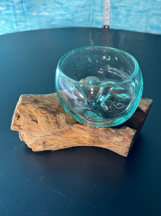15cm glass on driftwood. Glass or bowl